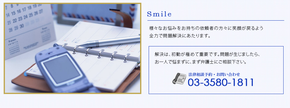 なお、電話・メールのみでのご相談は承っておりませんので、ご相談に際しては、直接、当事務所宛にご来所いただく必要があります。直接お会いしてお話しさせていただかないと、事案に応じた適切なアドバイスをご提供することができないからです。